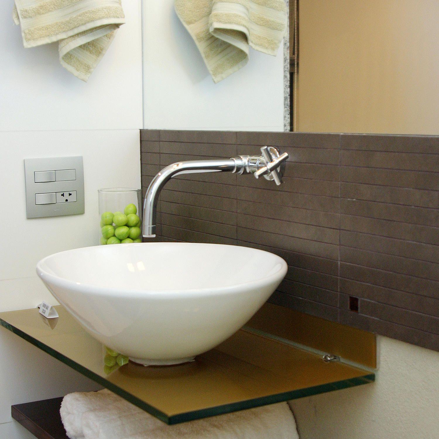Essas torneiras de bica alta também podem ser colocadas mais para a lateral da cuba, ou do lado mesmo, não é necessário deixar centralizada. Isso é prático para banheiros ou lavabos pequenos e para dar um charme na sua decoração.